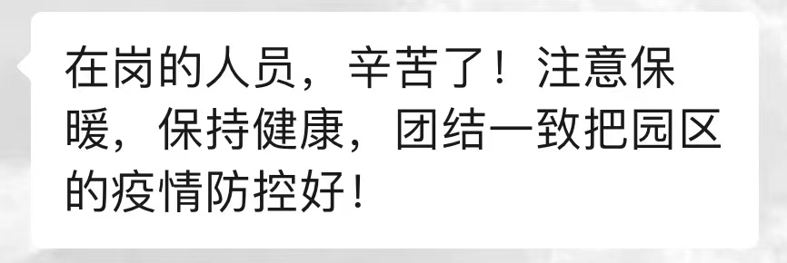 面對不斷擴散的疫情,長(cháng)信人員全面強化園區管控力度,配合相關(guān)部門(mén)保障項目防控措施的落實(shí),制定因地制宜的封閉式管理模式,盡最大努力隔絕病毒傳播的可能性。同時(shí),在馬上到來(lái)的春節期間,園區全面升級各項防御舉措,為園區企業(yè)筑牢安全防護墻。